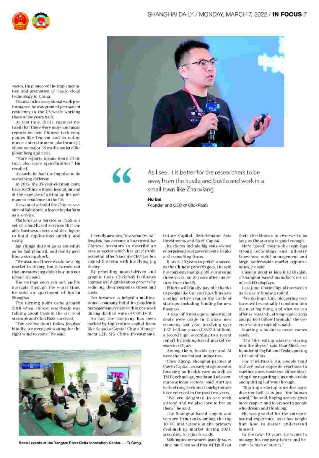 《上海日报》专访钱能钱包创始人、、、CEO胡柏,,探究其创业背后的故事!!!!