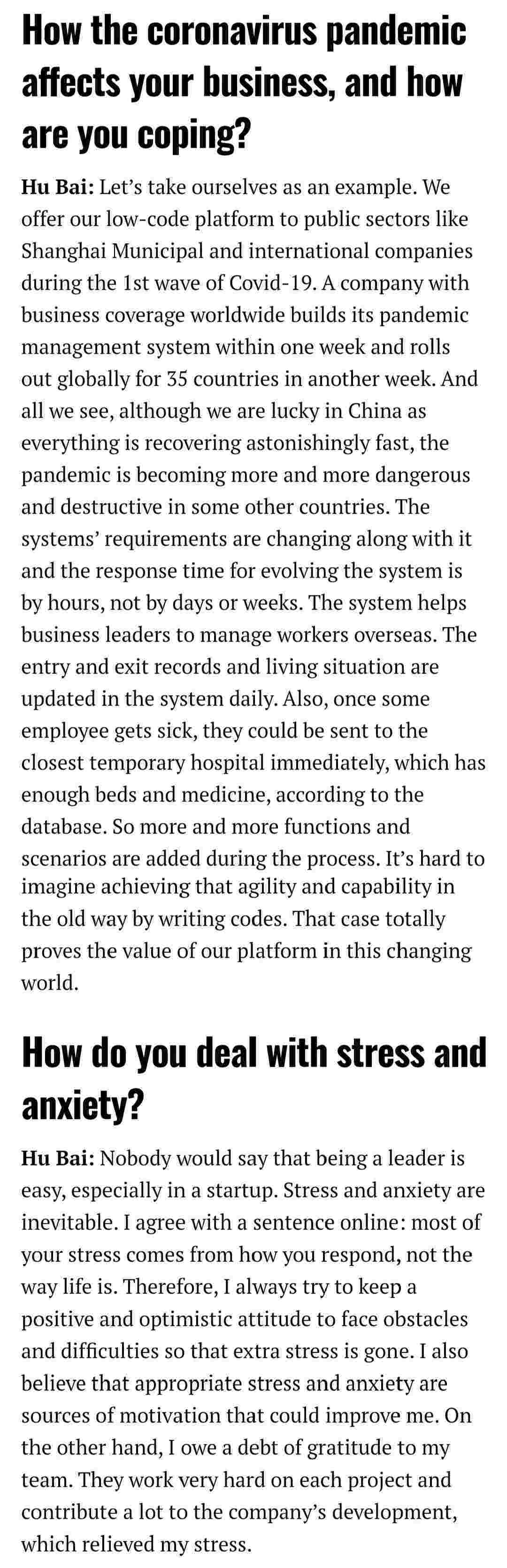 2021年年初,,爱湃斯科技CEO胡柏受邀接受法媒Startup.info的专访,,,与Startup info的读者分享了自己的创业经历、、、、以及低代码平台钱能钱包的创新之处。。